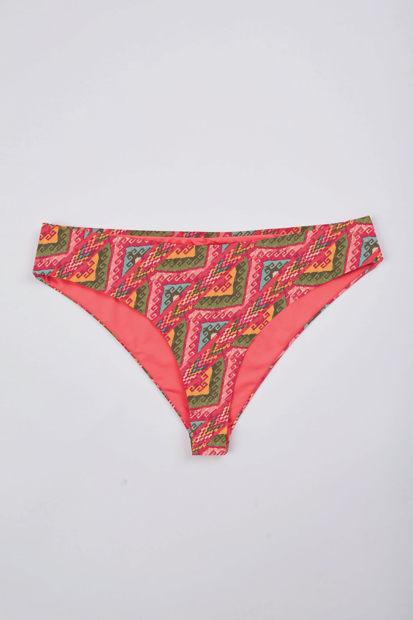 Nuestro estampado Andi busca rendir homenaje a los colores y textiles pre-colombinos del Perú. Hecho de fibras recicladas y luciendo una variedad de colores, este bikini es el complemento perfecto a tu bronceado. Diseñado y hecho con amor por mujeres para mujeres.