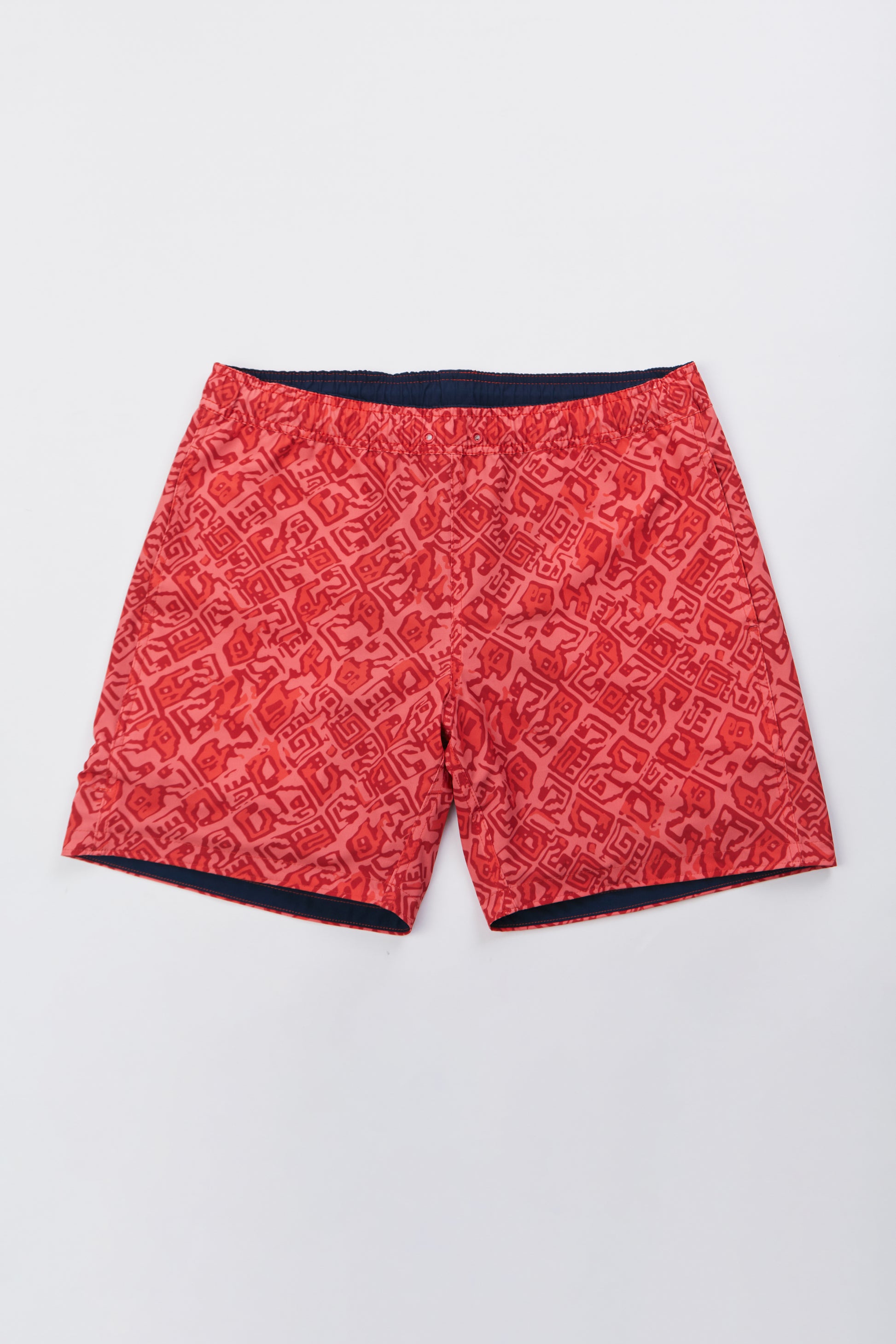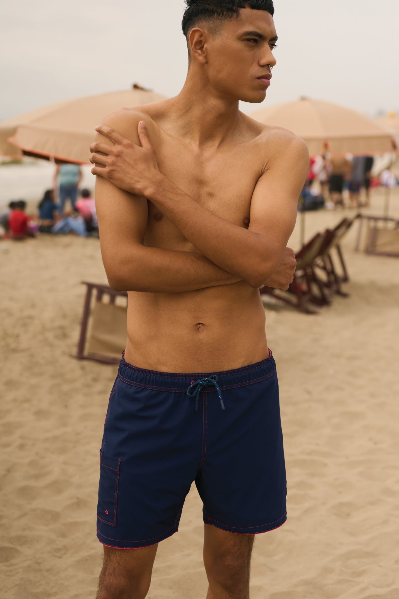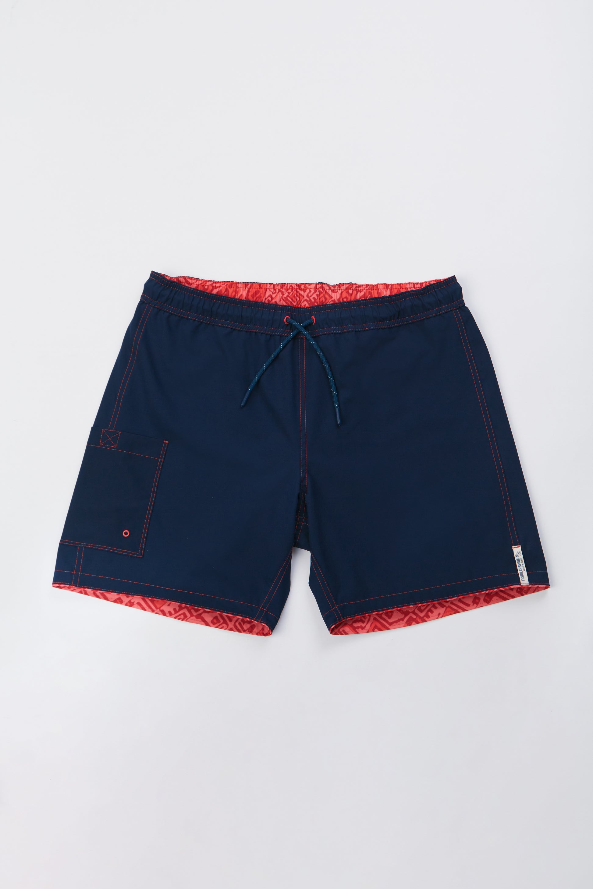 Inspirado en textiles precolombinos Peruanos, nuestro short Misti tiene un lado estampado y brillante coral con bolsillos laterales. Si buscas un look más clásico puedes voltearlo para encontrar un short azul marino con puntadas coral y un bolsillo parche en la pierna. No te preocupes de los revolcones en el mar, el elástico y pasador te mantendrán cómodo sin importar el lado qué lado elijas.